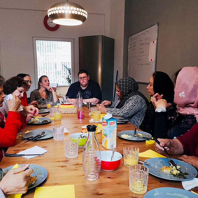 Die Frauen kommen, um gemeinsam zu kochen und zu essen. Jede Woche ist eine andere Gruppenteilnehmerin dran etwas mit Hilfe der anderen zu Kochen. Das eigenständige Vorbereiten und Kochen stärkt das Selbst der Frauen. Es wird viel geredet und gelacht.